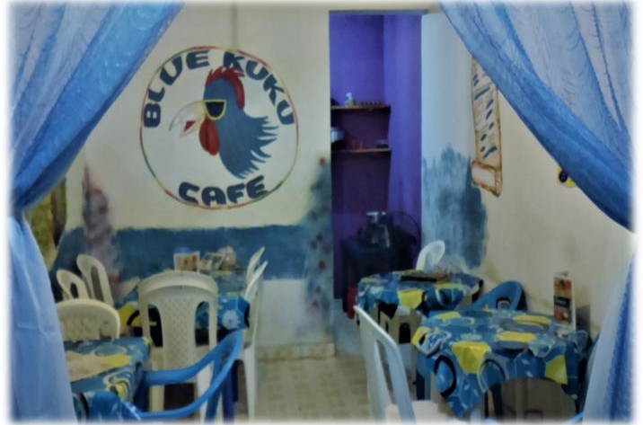 A blue kuku adorns the shop front and is the standout feature in this area, known locally as Mkoroshoni. Blue is the predominant colour of the façade, which boasts the…